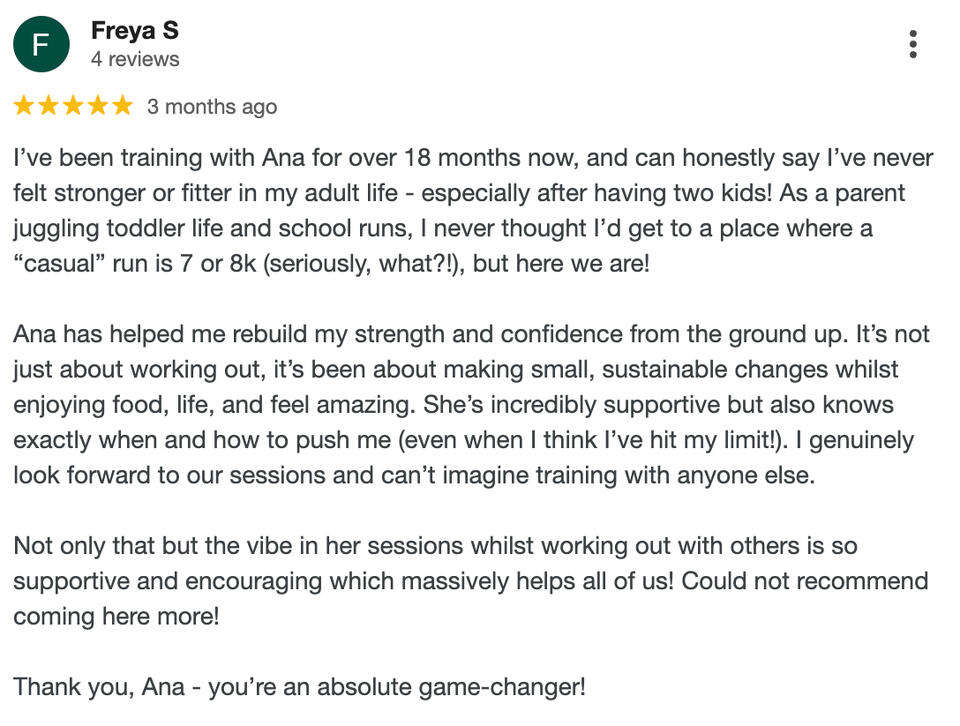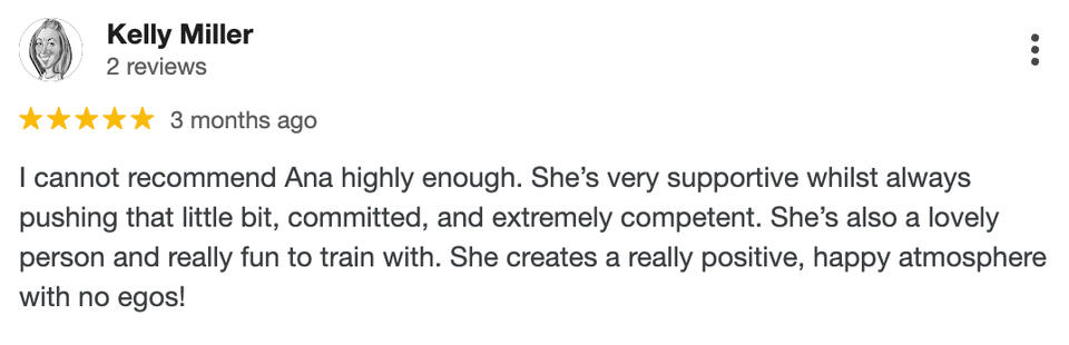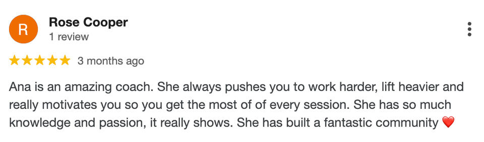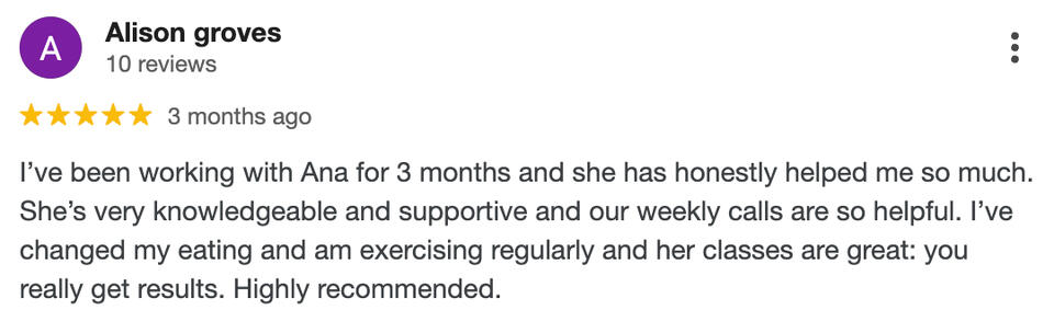 “Ana follows through on everything that she promises. We get a call once a week and talk about what you can do to support us. It just makes us kind of accountable as well. The support and motivation go beyond the gym.”