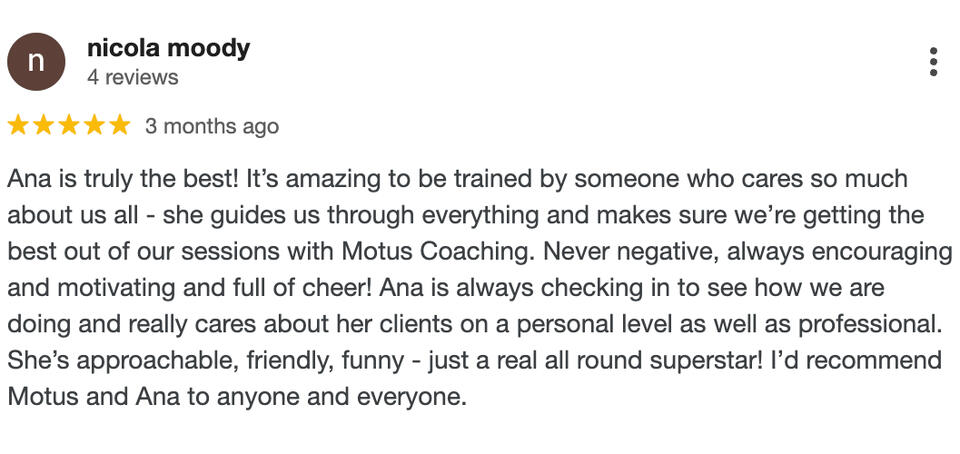 “Ana follows through on everything that she promises. We get a call once a week and talk about what you can do to support us. It just makes us kind of accountable as well. The support and motivation go beyond the gym.”